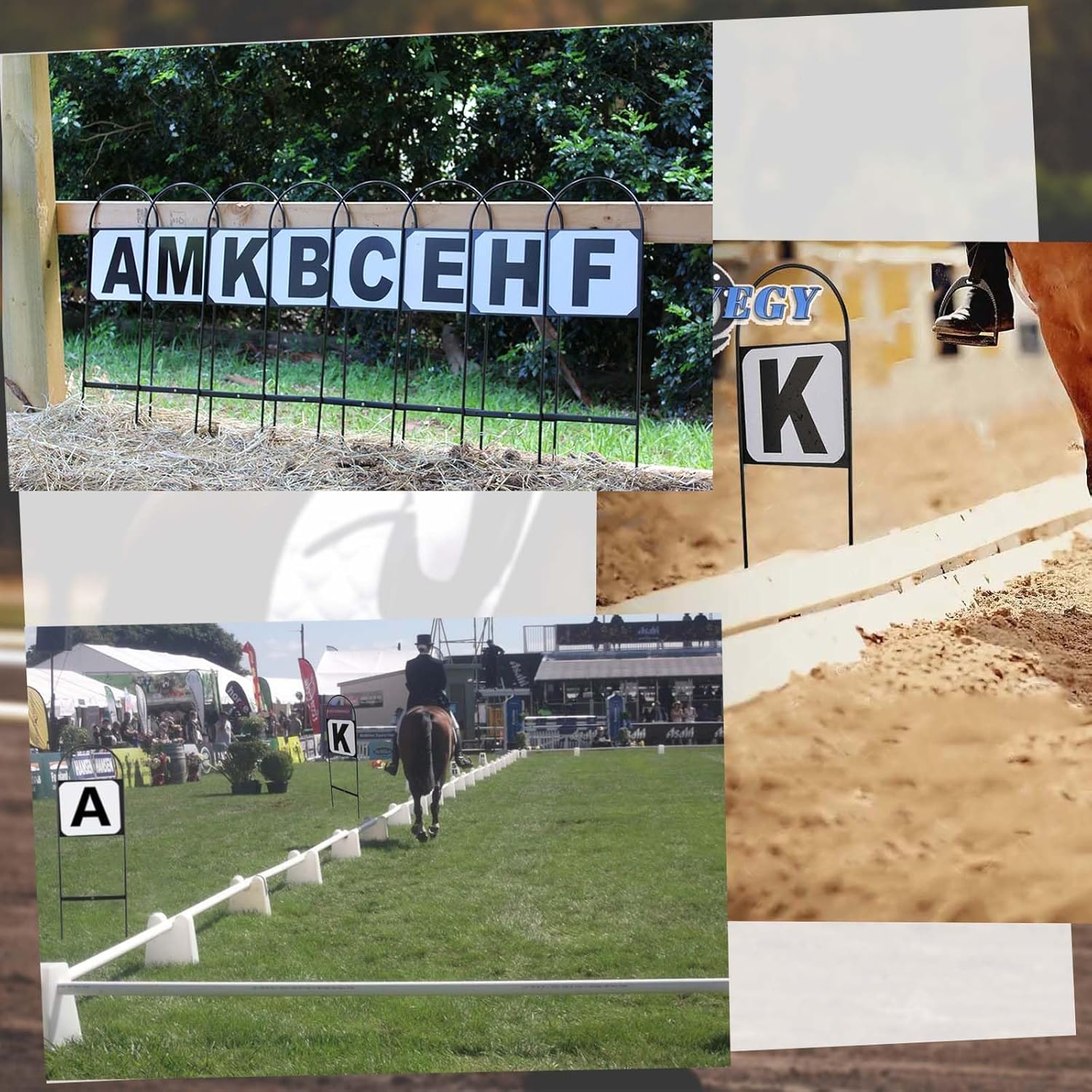 The package includes 8 dressage letters: A, B, C, E, F, H, K, M, perfect for setting up a dressage arena.