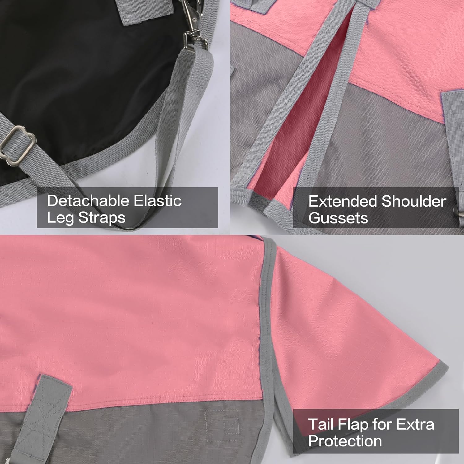 - Versatile Turnout Rain Sheet: All stress points are reinforced to help prevent tears. The adjustable/detachable leg straps help secure the blanket and prevent shifting, while the tail cover provides additional protection from moisture. All hardware is made of rust-free stainless steel.